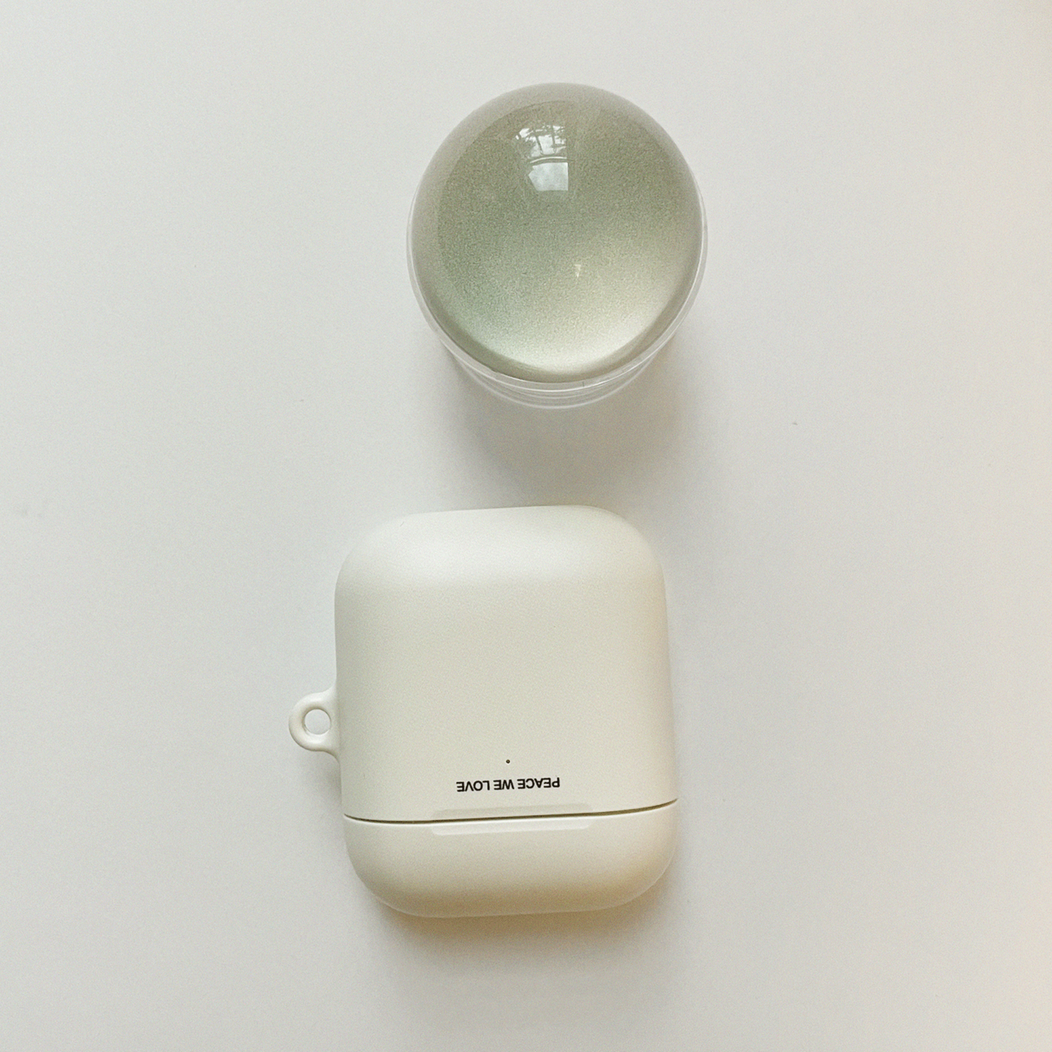 따뜻한 크림색의 무광 에어팟 케이스 제품입니다.