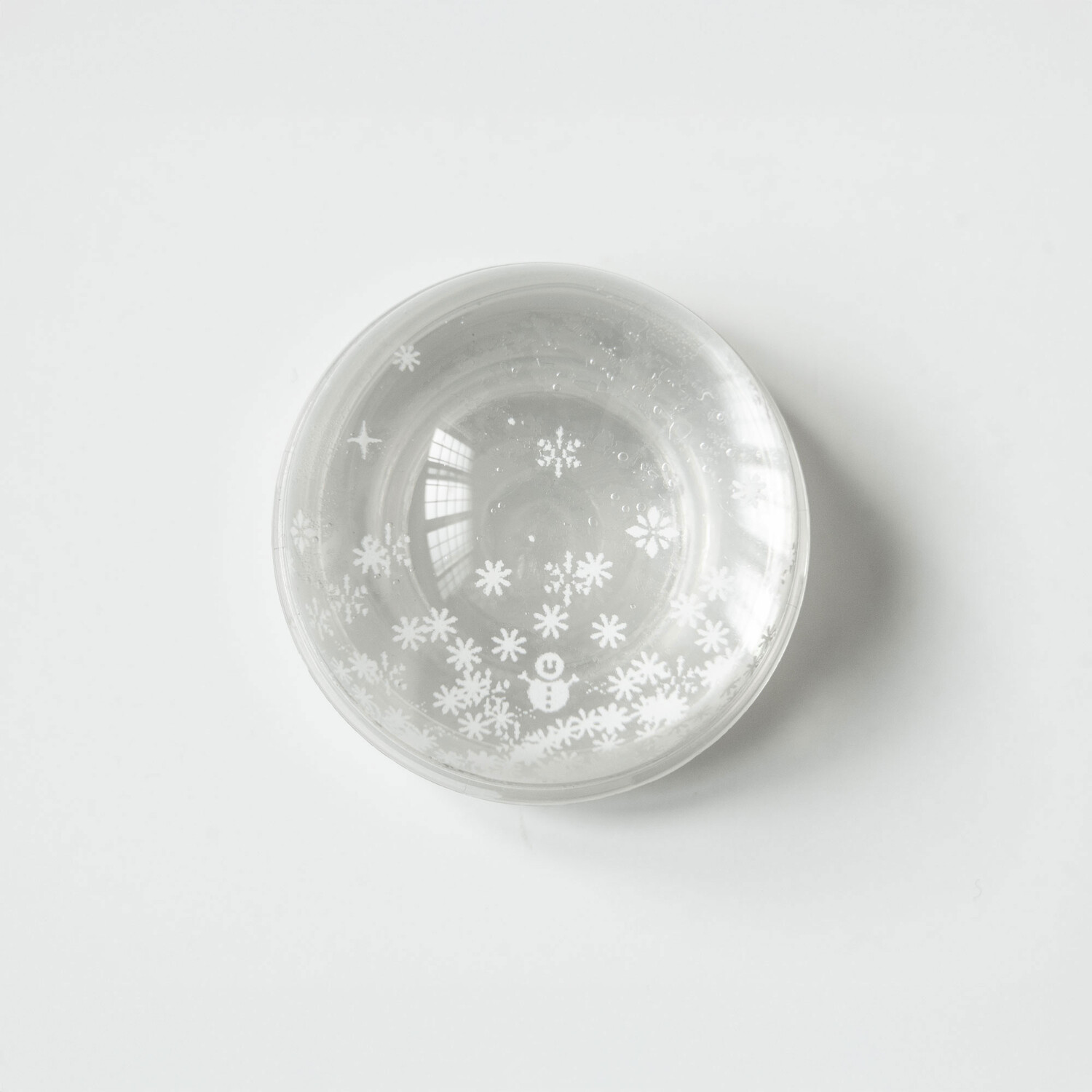 바닥면이 투명한 제품으로, 기포나 검은 점 같은 얼룩이 눈에 띌 수 있습니다.