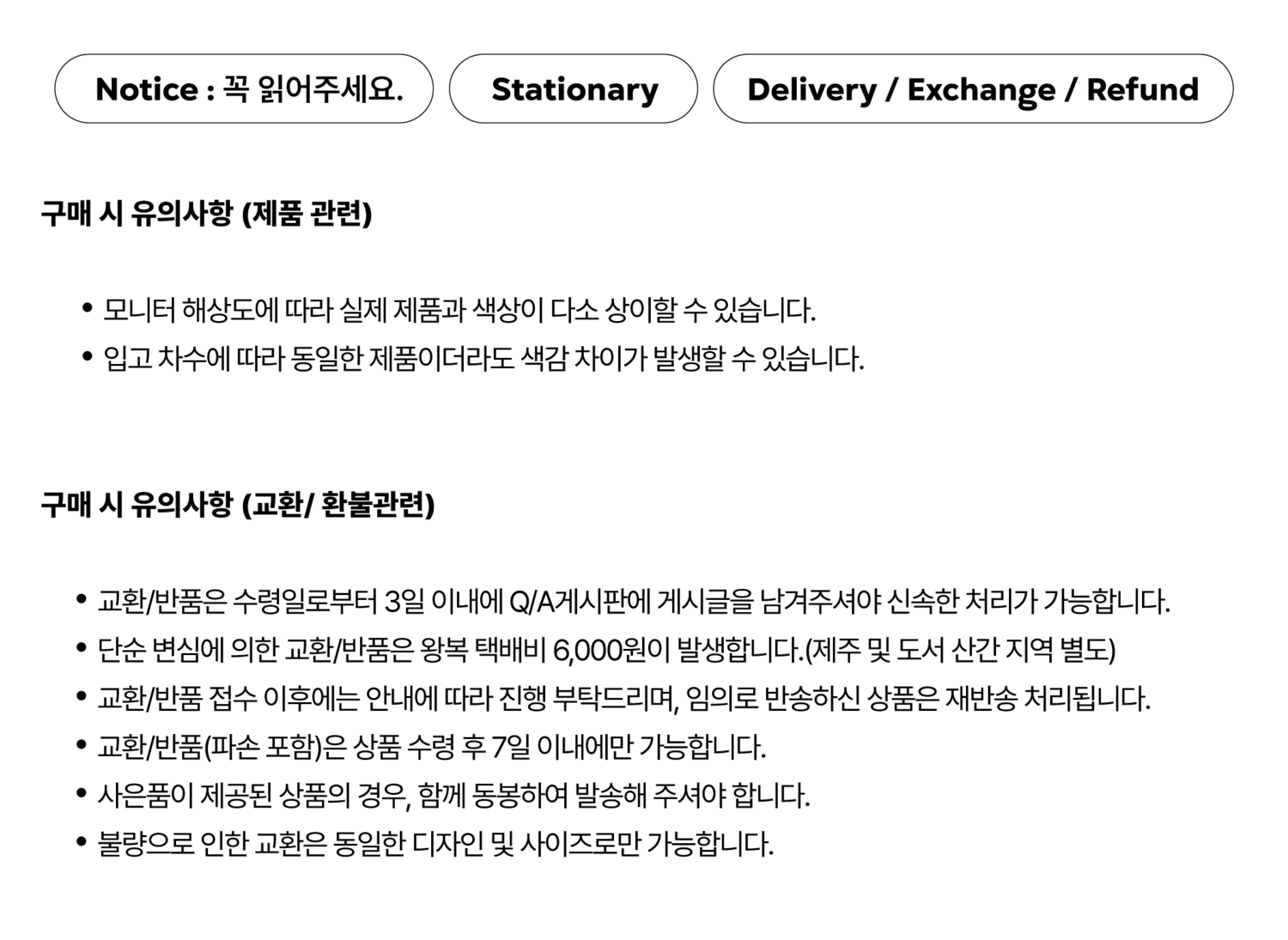 주문 후 제작되는 1:1 제작 상품은, [변심/실수/배송 기간]으로 인한 취소/환불이 어렵습니다.