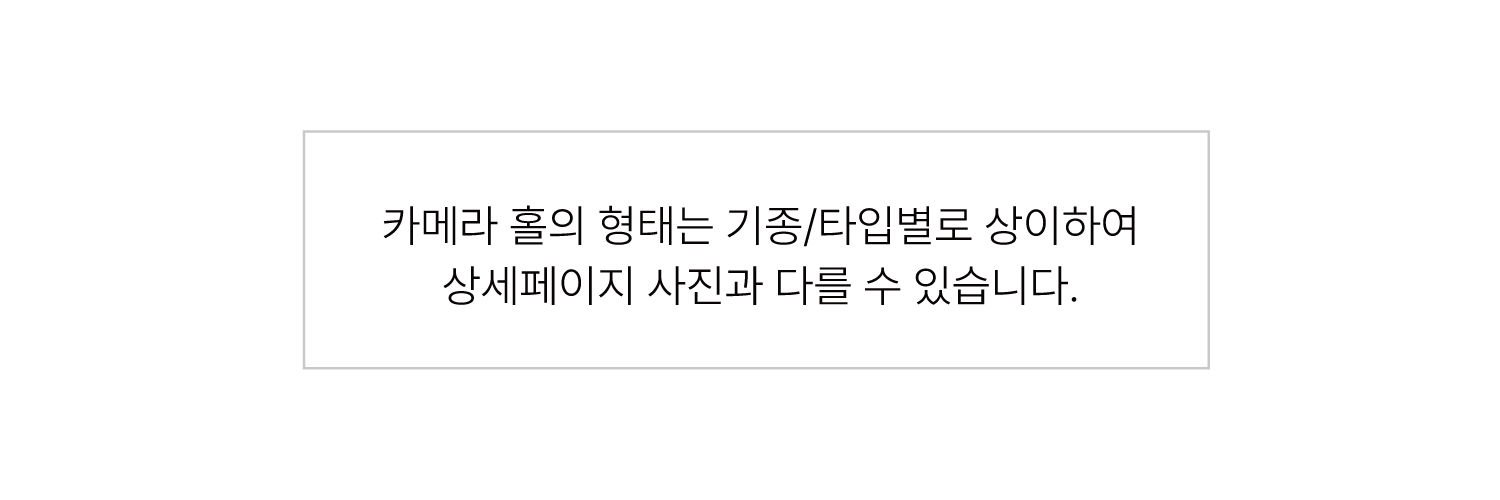 ② 아이폰 16·17 일반 기종은 12월 22일 주문건부터 ‘ㅏ’ 형태의 카메라 홀 디자인이 적용됩니다. 그 이전 주문건의 경우 제작 시점에 따라 기존 디자인(ㅁ형)과 혼재되어 출고될 수 있습니다. 관련 문의사항은 고객센터로 연락 주시기 바랍니다.
