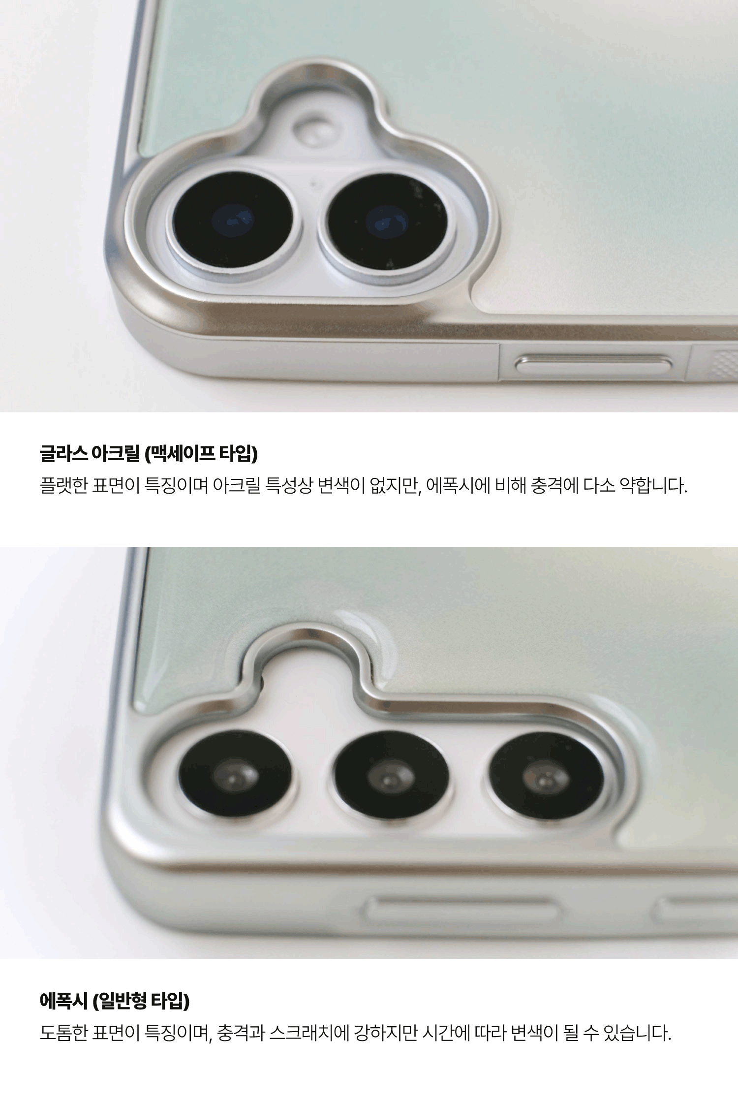 ② 범퍼 케이스의 아이폰 16과 17은 타입별로 '카메라홀' 형태가 다를 수 있습니다. (일반형 'ㅁ'형 / 맥세이프 'ㅏ'형) ※11/4 이후 주문건부터 적용