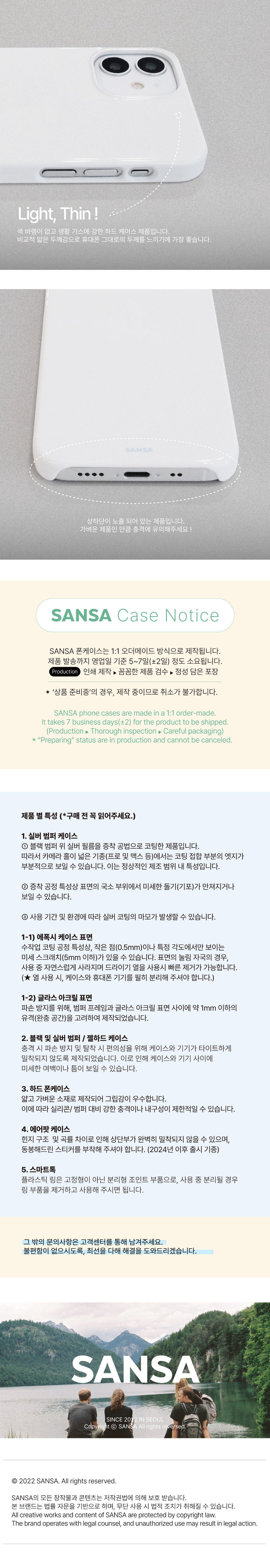 ① 폰케이스 제품은 1:1 주문 제작 형식으로 제작되는 상품이며, 영업일 기준 5-7일 이내 발송 예정입니다.